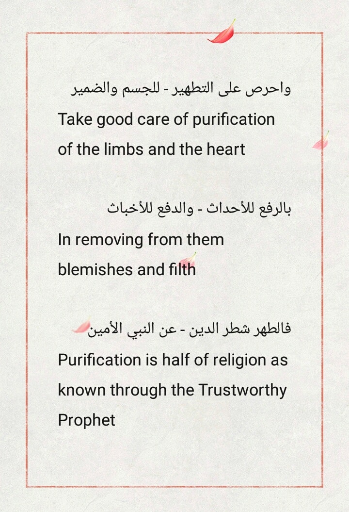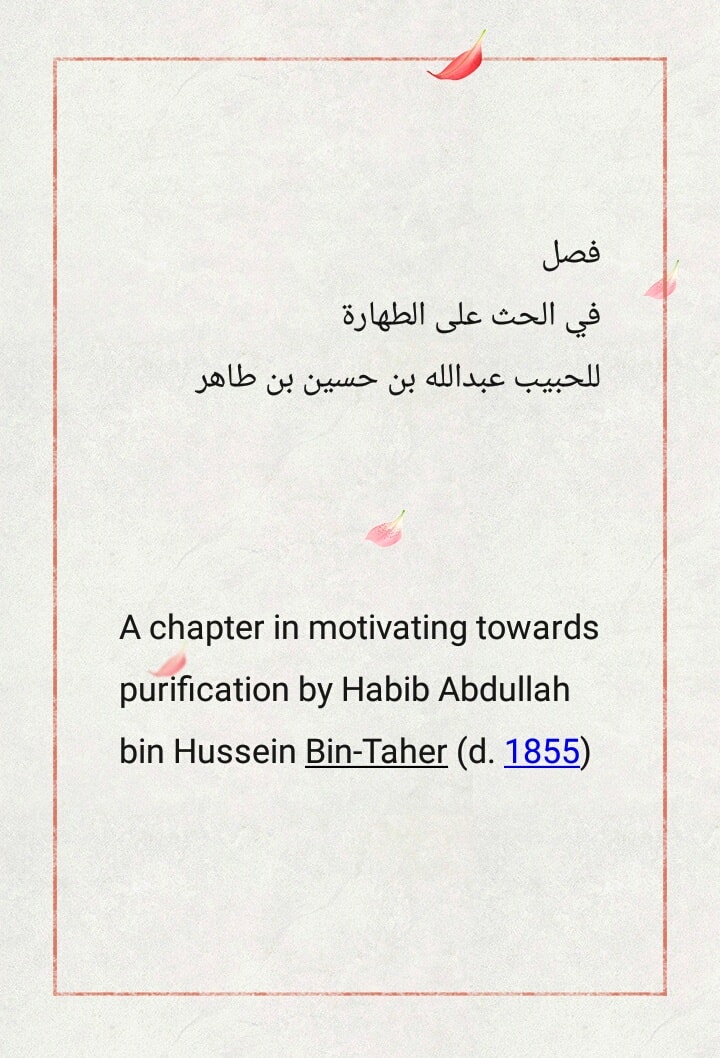 Here’s my rough translation of Habib Abdullah Bin-Taher’s ode on purification. I’ve included the Arabic so as to invite others to correct the inaccuracies and mistakes.